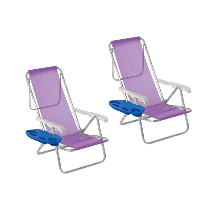 Kit 2 Cadeira Praia 8 Pos. Aluminio + 2 Mesa P/ Cadeira Mor cor:lilás