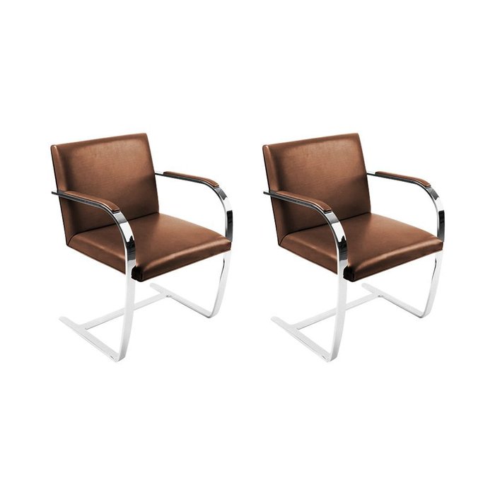 Kit 2 Cadeiras Brno Escritório Couro Sintético Marrom Barra Chata Cromada