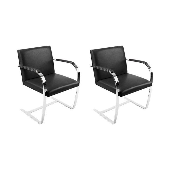 Kit 2 Cadeiras Brno Escritório Couro Sintético Preto Barra Chata Cromada PRETO