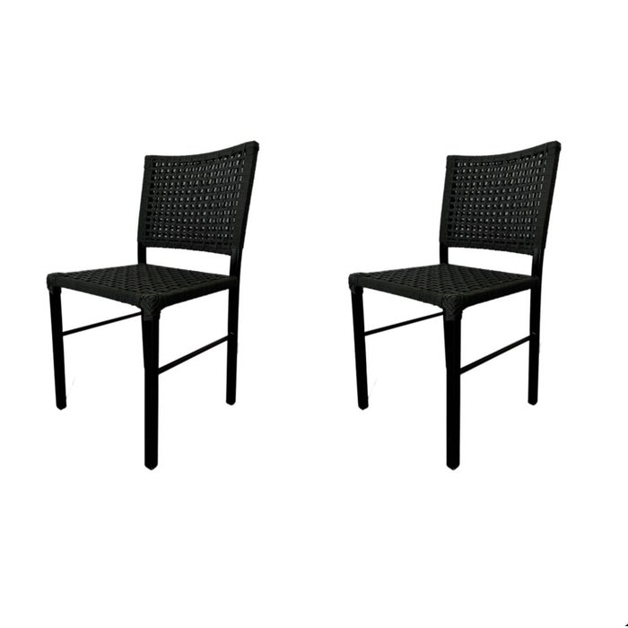Kit 2 Cadeiras Camila Corda Náutica e Alumínio Preta Preto