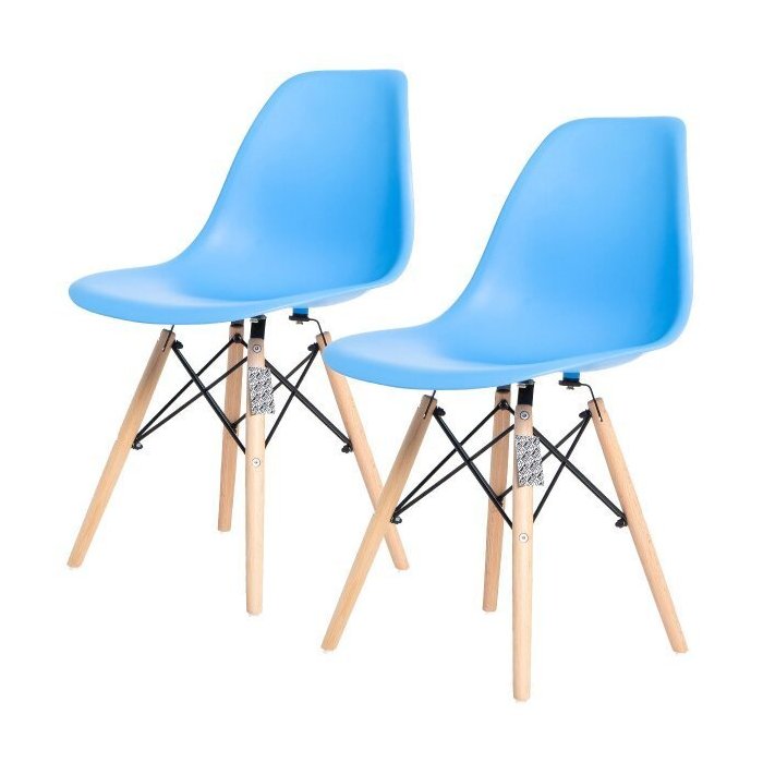 Kit 2 Cadeiras Charles Eames Eiffel Wood - Design - Azul
