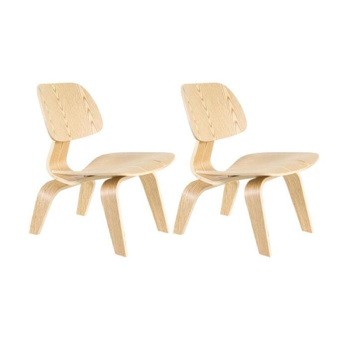 Kit 2 Cadeiras Charles Eames Lcw - Poltrona Lounge - Madeira Clara Multicolorido