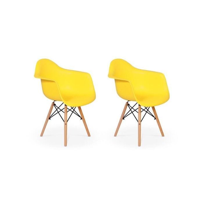 Kit 2 Cadeiras Charles Eames Wood - Daw - com Braço - Design - Amarela