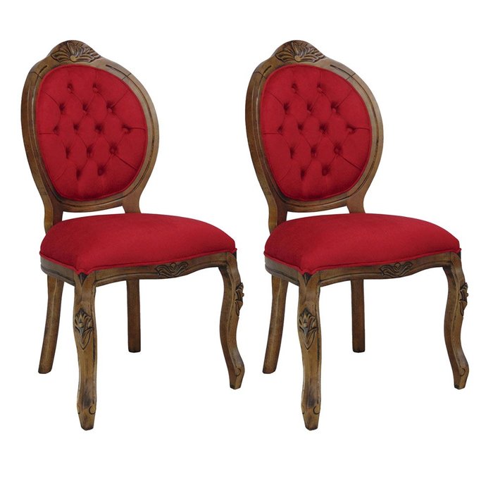 Kit 2 Cadeiras Clássica Medalhão Entalhada Estilo Antigo Vermelho Soberati Cadeira Medalhão Entalhad