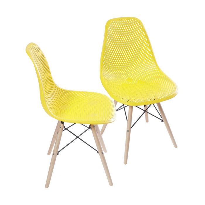 Kit 2 Cadeiras Colmeia Base Madeira Amarela