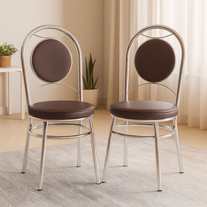 Kit 2 Cadeiras Cromadas CC10 A109 Debrum Cromado/Marrom