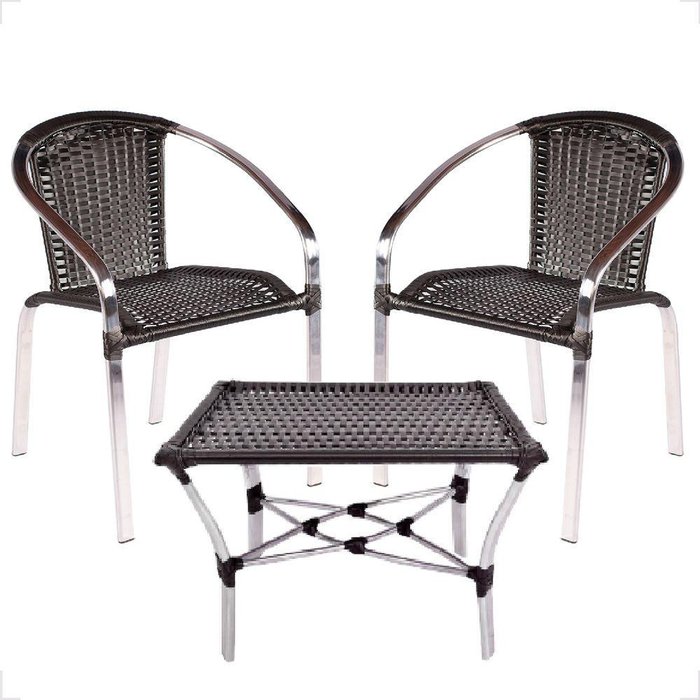 Kit 2 Cadeiras De Alumínio E Mesa De Centro Para área Externa Pinheiro Artesanal Cor:preto Conjunto 2 Cadeiras de Alumínio e Mesa Tramada Mesa de Centro Para Área Externa Pinheiro Trama Artesanal– Cálamus Peso Máximo Recomendado: 160kg. Eleve O Seu Espaço Ao Ar Livre Com Nosso Conjunto Pinheiro.