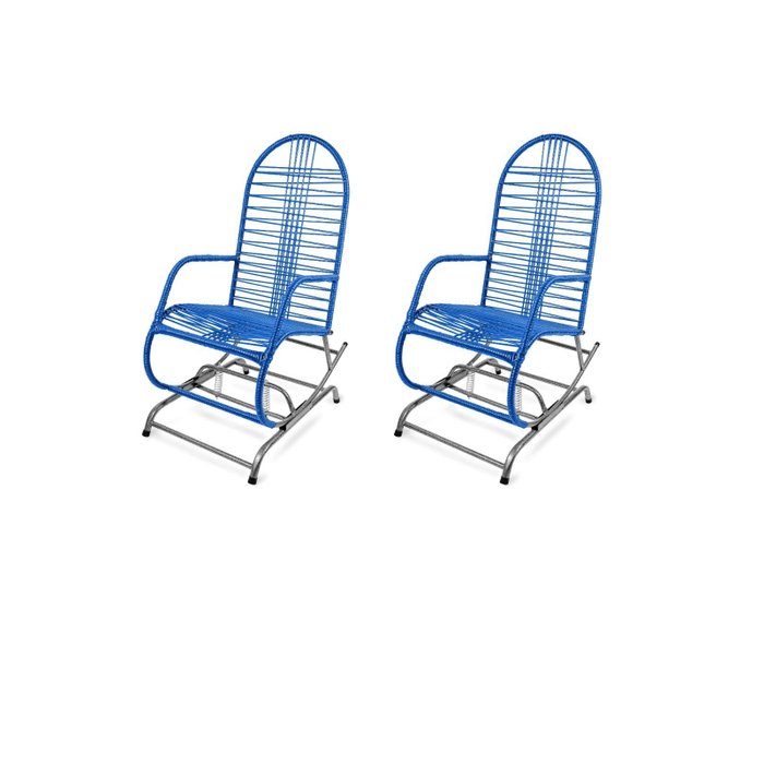 Kit 2 Cadeiras de Balanço Reforçada Poltrona do Papai de Fio Molas Jardim Varanda Alpendre Cor Azul Azul