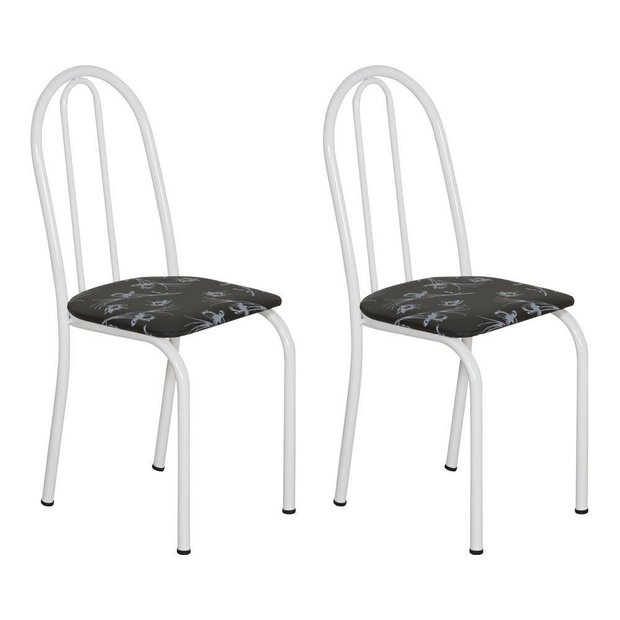 Kit 2 Cadeiras de Cozinha Califórnia Estampado Preto Florido Pés de Ferro Branco Preto Florido