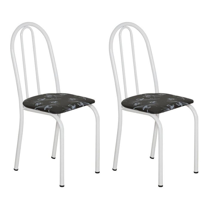 Kit 2 Cadeiras de Cozinha Califórnia Estampado Preto Florido Pés de Ferro Branco