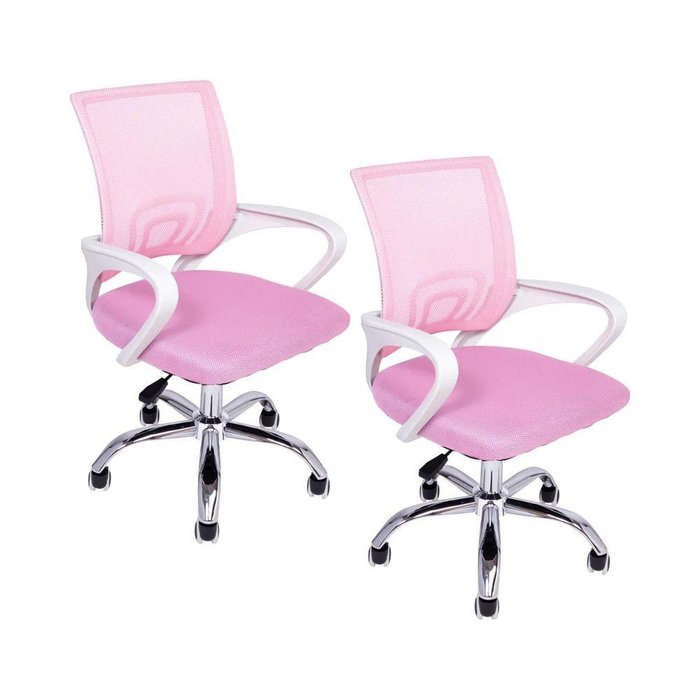 Kit 2 Cadeiras De Escritório Begonia Tela Mesh Ergonômico Rosa