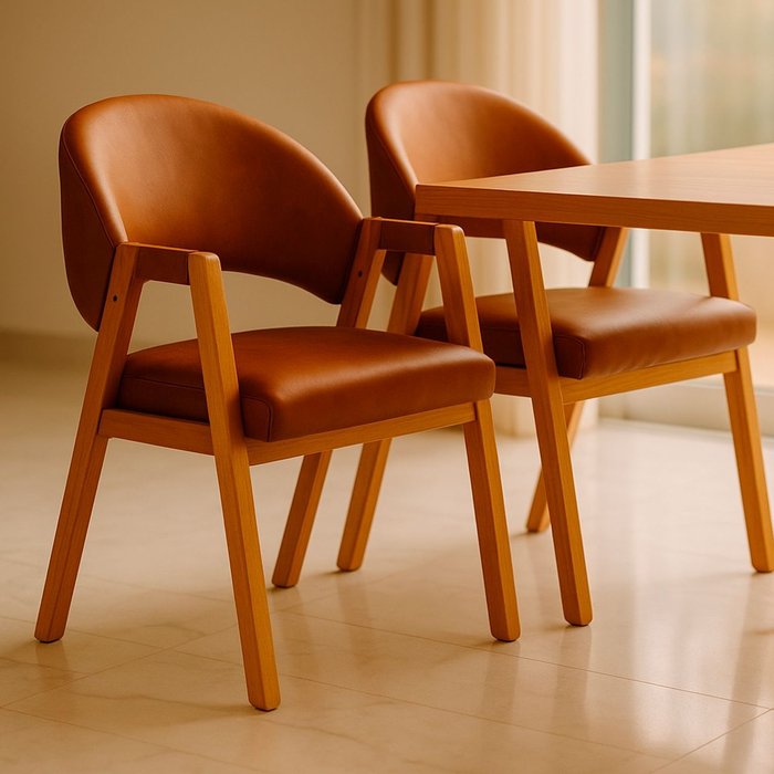 Use uma unidade como cadeira complementar no escritório doméstico ou perto da penteadeira — o assento D26 garante conforto prolongado, sem perder a postura elegante da sala de jantar. Funciona bem em apartamentos e casas com layout integrado.