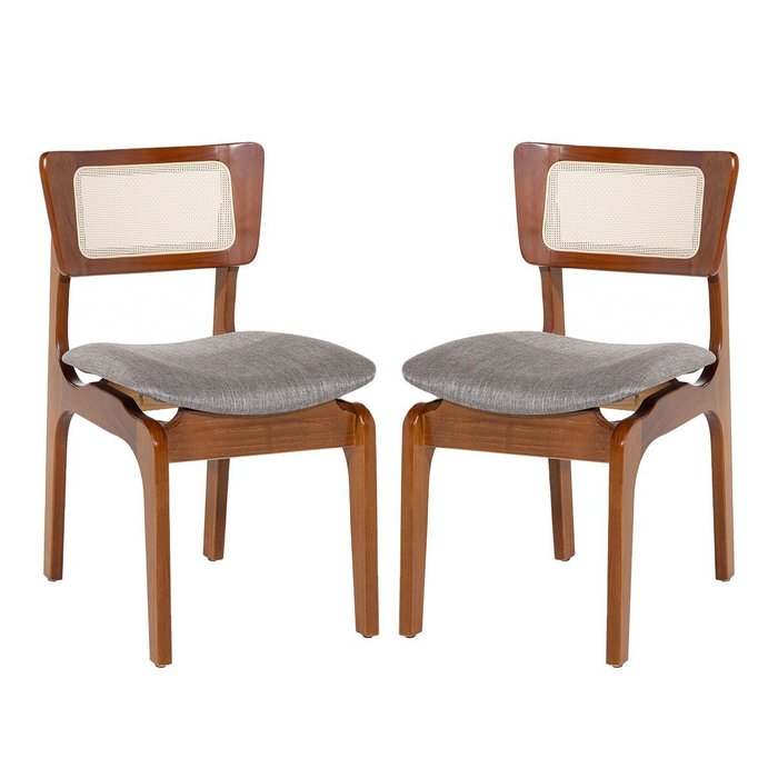 Kit 2 Cadeiras de Jantar Portugal em Madeira Imbuia Tela Rattan Linho Cinza L55 Imbuia