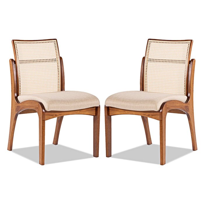 Kit 2 Cadeiras de Madeira com Encosto em Rattan Lisboa Linho Bege M58 Rmi Imbuia