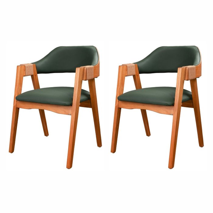 Kit 2 Cadeiras de Madeira Maciça Tauari, Estofada e Braço com Corda Náutica Bélgica Espresso Móveis Imbuia/Verde