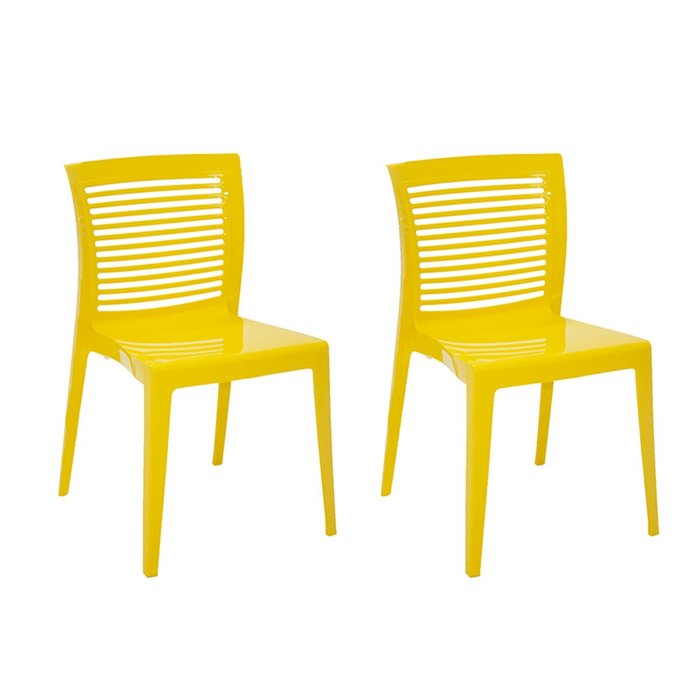 Kit 2 Cadeiras de Plástico Polipropileno com Encosto Horizontal Victória - Tramontina - Amarelo 9404