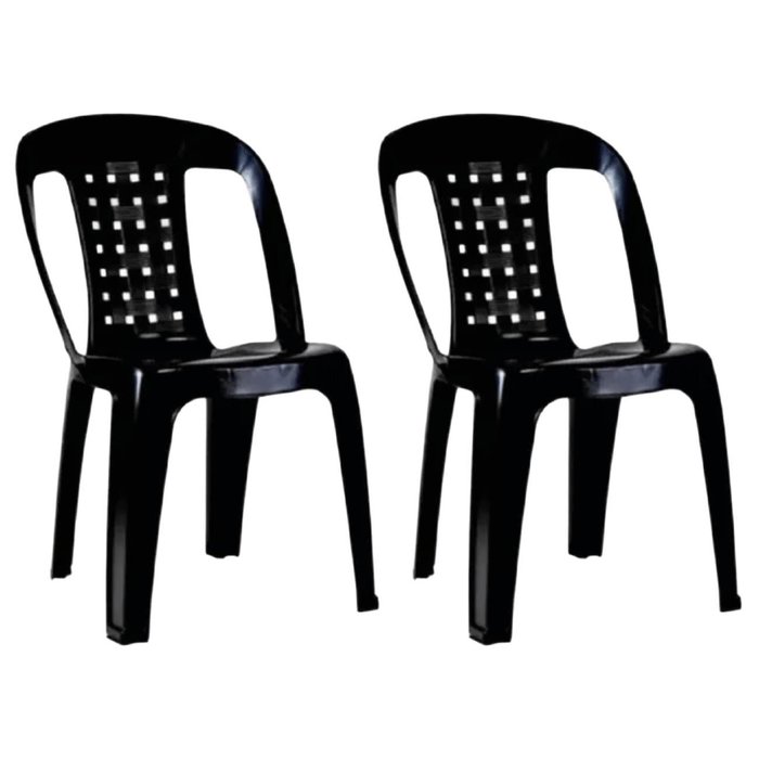 - 02 Cadeiras de Plástico Preta Com Encosto Empilhável