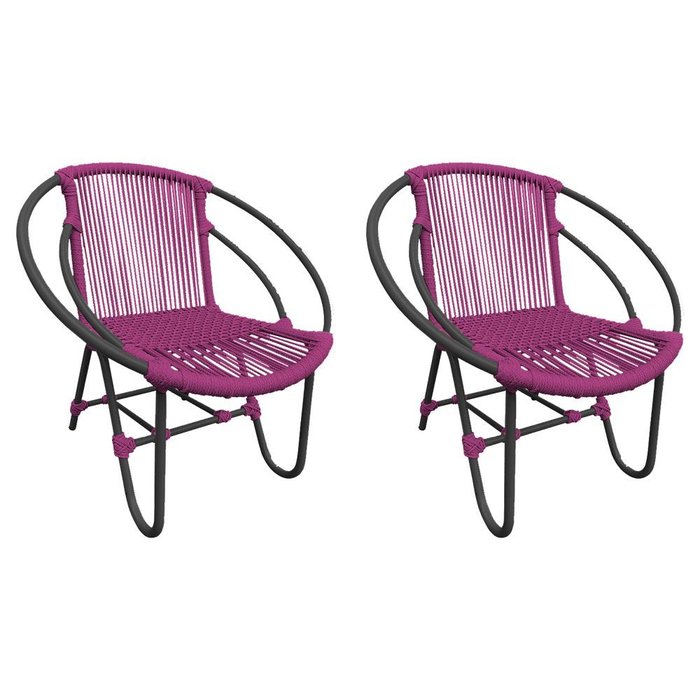Kit 2 Cadeiras Decorativa Julia em Corda Náutica e Base em Alumínio Preta/ Rosa ROSA