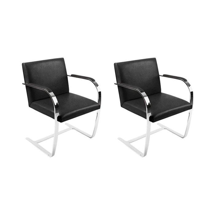 Kit 2 Cadeiras Design Brno Couro Natural Preto Barra Chata Cromada
