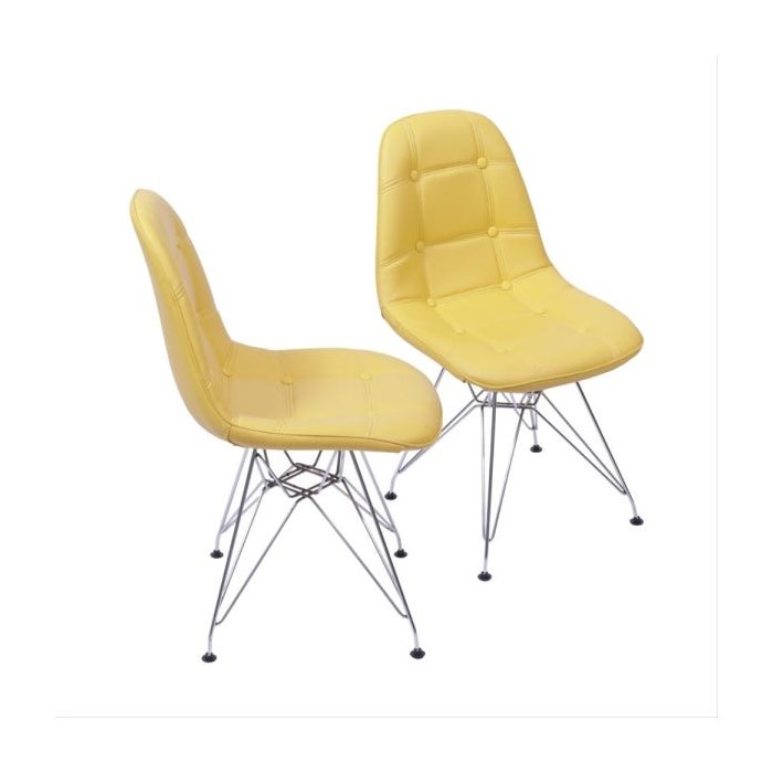 Kit 2 Cadeiras Dkr Botonê Amarela Base Cromada - Or Design