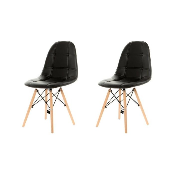 Kit 2 Cadeiras Eames Botonê Estofada - Preta - Kza Bela