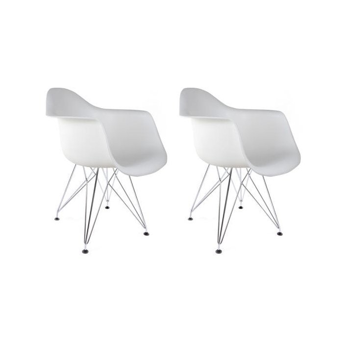Kit 2 Cadeiras Eames com Braços Branca - Base Eiffel Cromado