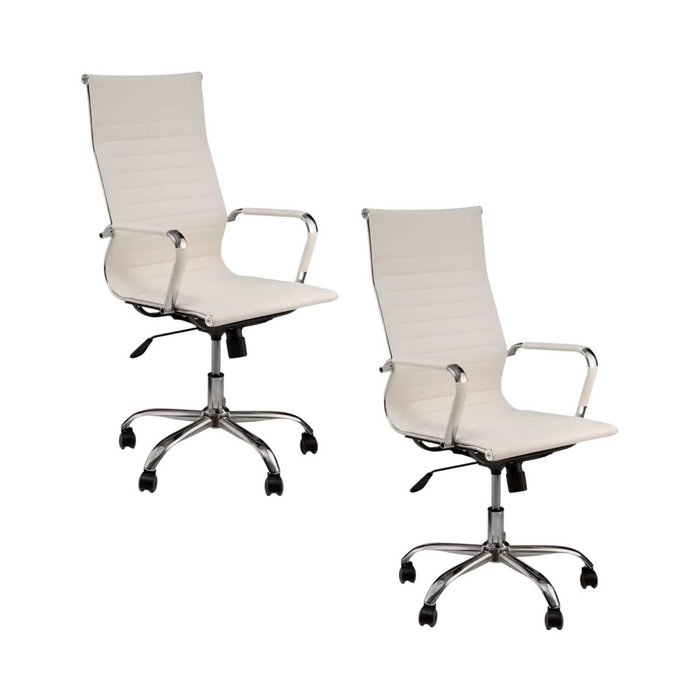 Kit 2 Cadeiras Escritório Giratória Esteirinha Alta Branco