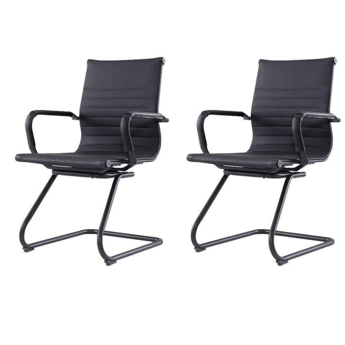 Kit 2 Cadeiras Escritóriomanhattan Black Esteirinha Diretor Fratini em Pu Preto Base Fixa Preto Preto