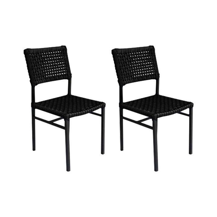 Kit 2 Cadeiras França Corda Náutica Base em Alumínio Preto/preto PRETO