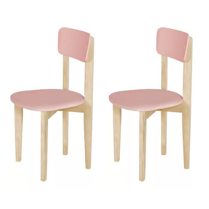 Kit 2 Cadeiras Infantil Elisa Assento Suede Rosa Base em Madeira Maciça
