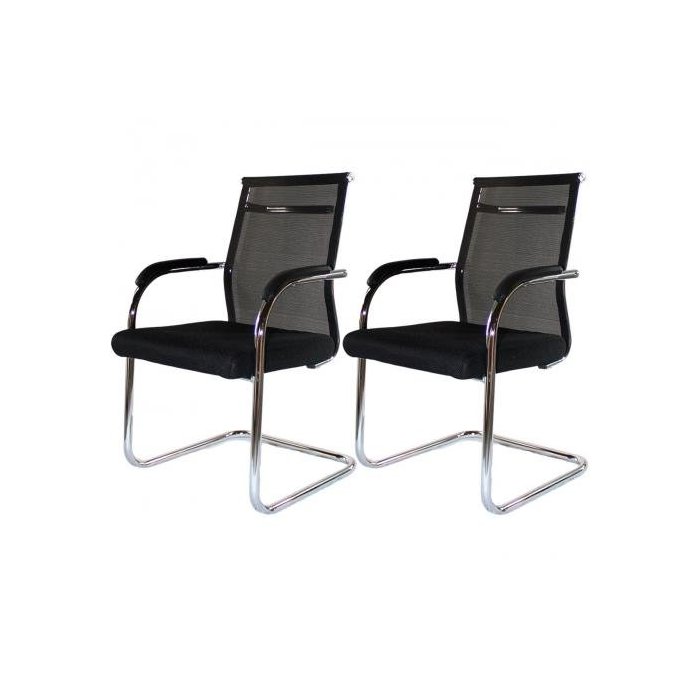 Kit 2 Cadeiras Interlocutor Mesh Fixa Preta W-122