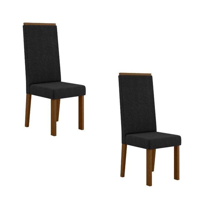 Kit 2 Cadeiras Livia Nuova – Madeira de Reflorestamento, Tecido Suede, Pés com Sapatilha Plá Ambar/Suede Preto