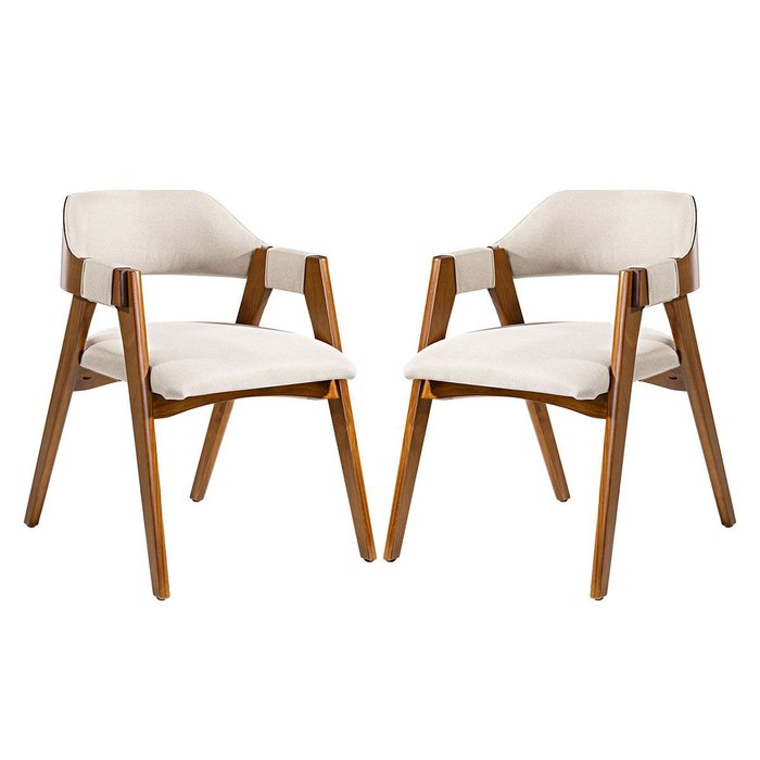 Kit 2 Cadeiras Lua Estofada Madeira Maciça Imbuia Linho Bege L60 Rmi
