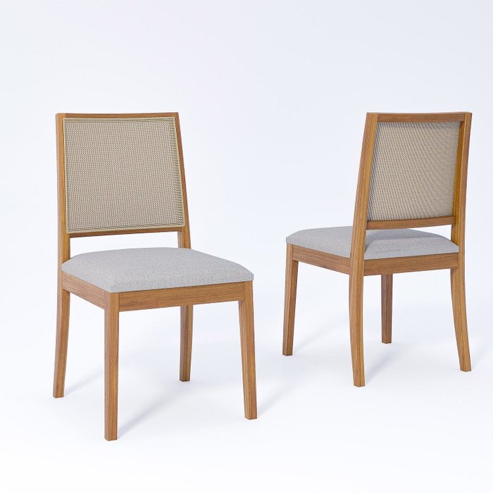 Kit 2 Cadeiras Madeira Maciça Estofada Buriti Cinza
