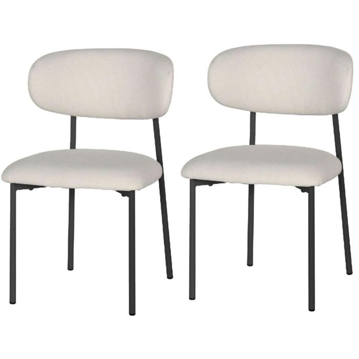 Kit 2 Cadeiras Manuela Rivatti Estofad Bouclê Off White Encosto Madeira Multilaminada Base Aço Preto, Madeira, Off White