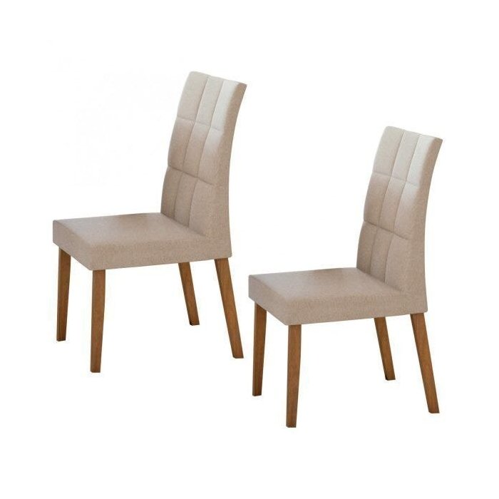 Kit 2 Cadeiras Odara Móveis Lopas Rovere Naturale/Linho Rinzai Bege