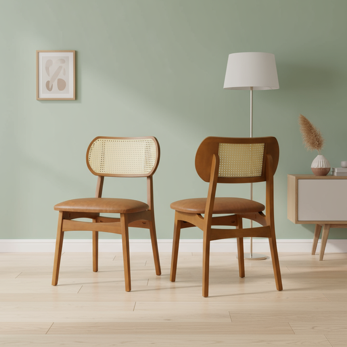Kit 2 Cadeiras Organik Madeira Maciça Encosto Telinha Assento Estofado Corano Amêndoa/Marrom