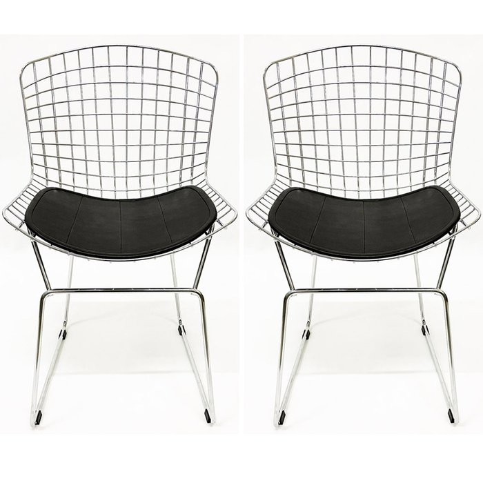 Kit 2 Cadeiras para cozinha BERTOIA cromadas assento preto - Poltronas do Sul