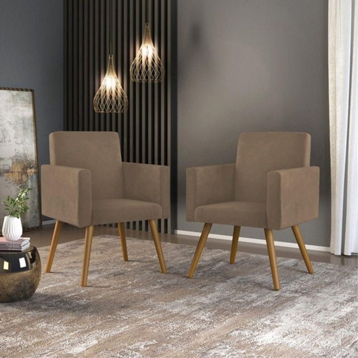 Kit 2 Cadeiras Poltronas para Escritório Recepção Capuccino Cor:capuccino capuccino