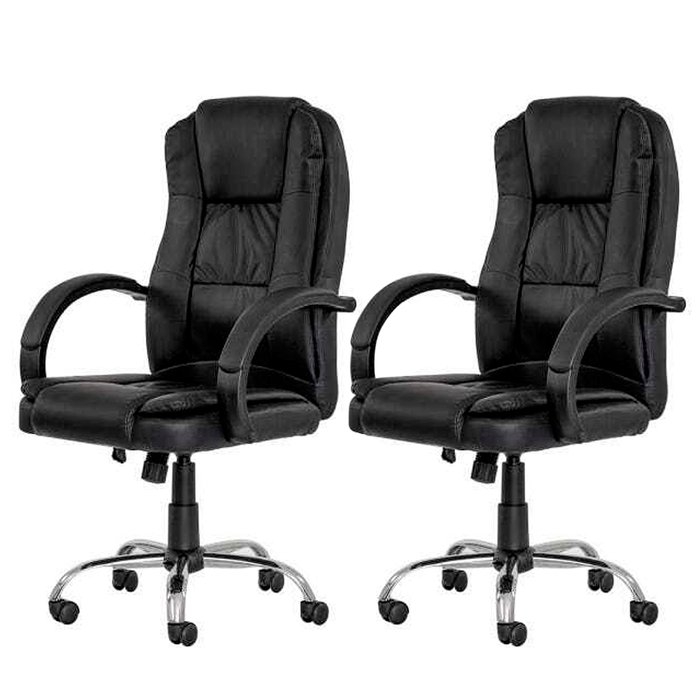 Kit 2 Cadeiras Presidente Giratória Para Escritório em Couro PU Preta W-65