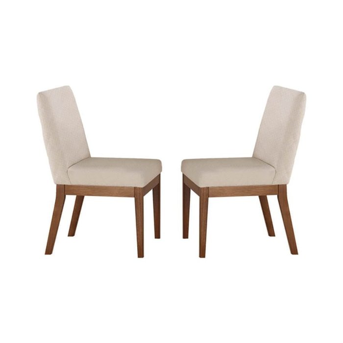 Kit 2 Cadeiras Rina Estofada C/ Detalhe em Costura Canela Linho Estampado Chevron Boreal Moveis