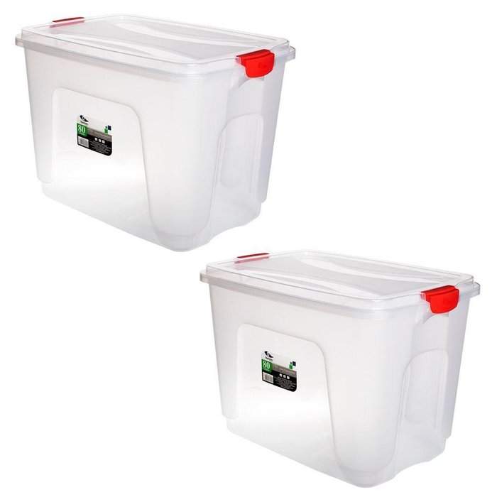 Kit 2 Caixas Organizadoras Grandes 80 Litros Multiuso com Travas Transparente