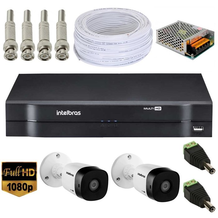 Kit 2 Câmeras Bullet FULL HD 1080p VHD 1010 + DVR 8 Canais Intelbras FULL HD + Acessórios