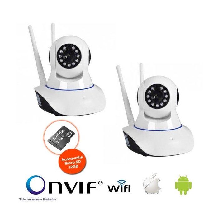 KIT 2 Câmeras IP Sem Fio Wifi HD 720p Robo, Grava em Cartão SD,Visão Noturna com Micro SD 32GB