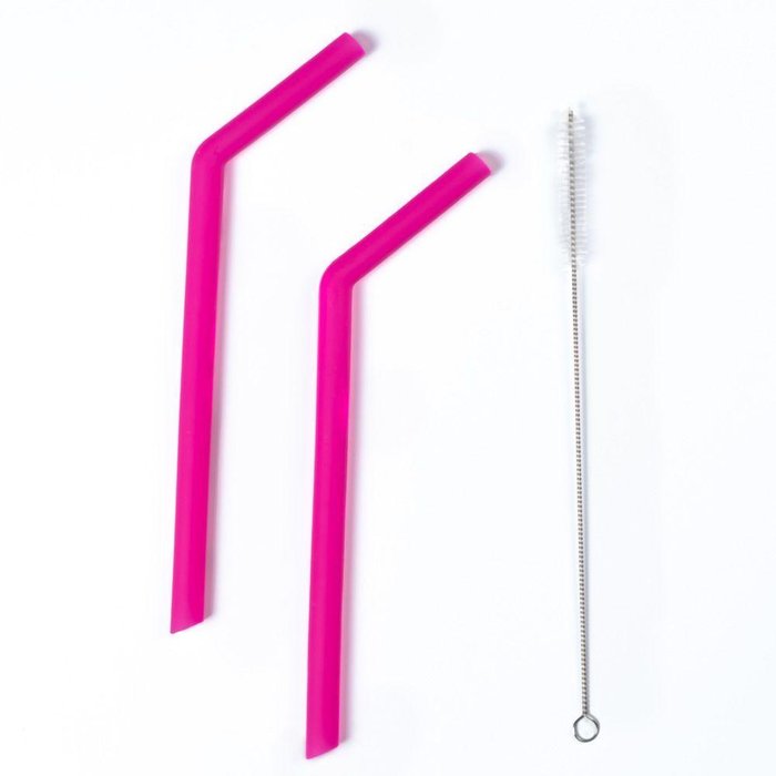 Kit 2 Canudos de Silicone Planck Pink com Escova