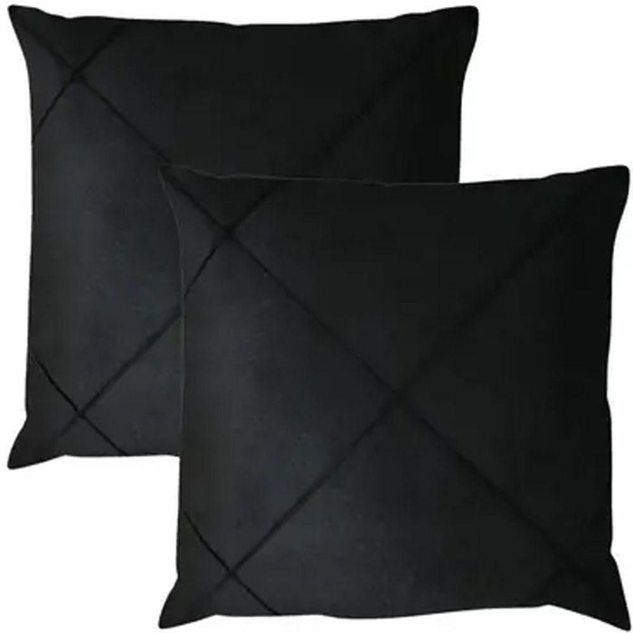 Kit 2 Capa De Almofada Suede Aveludada Drapeada 45x45cm Preto