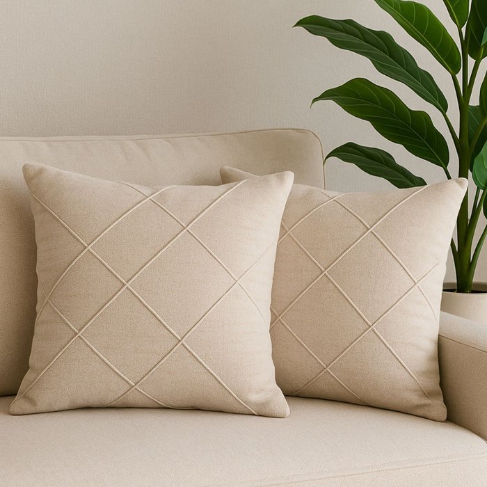 Kit 2 Capas de Almofada Linho Cru Drapeada Bege Cru 45x45cm