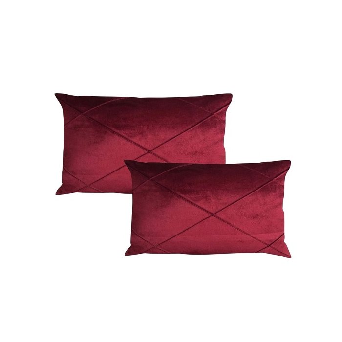 Kit 2 Capas de Almofada Veludo Drapeada Retangular Bordo