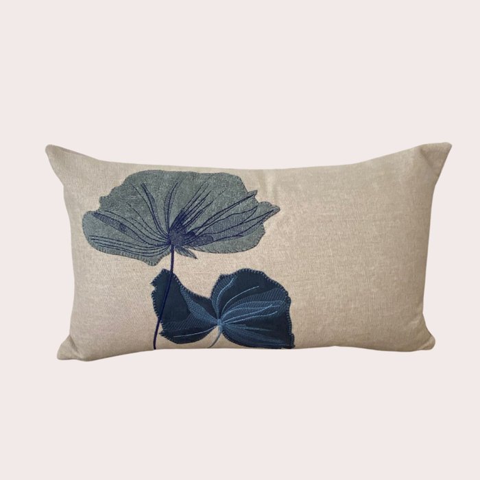 Kit 2 Capas de Almofadas Linho Bordada Floral Azul