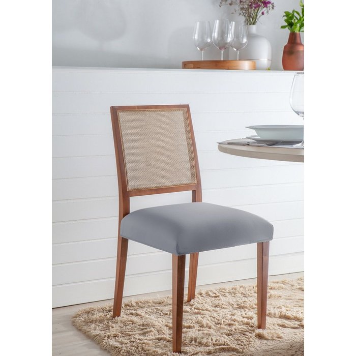 Kit 2 Capas para Assento de Cadeira, Cores Lisas Cinza